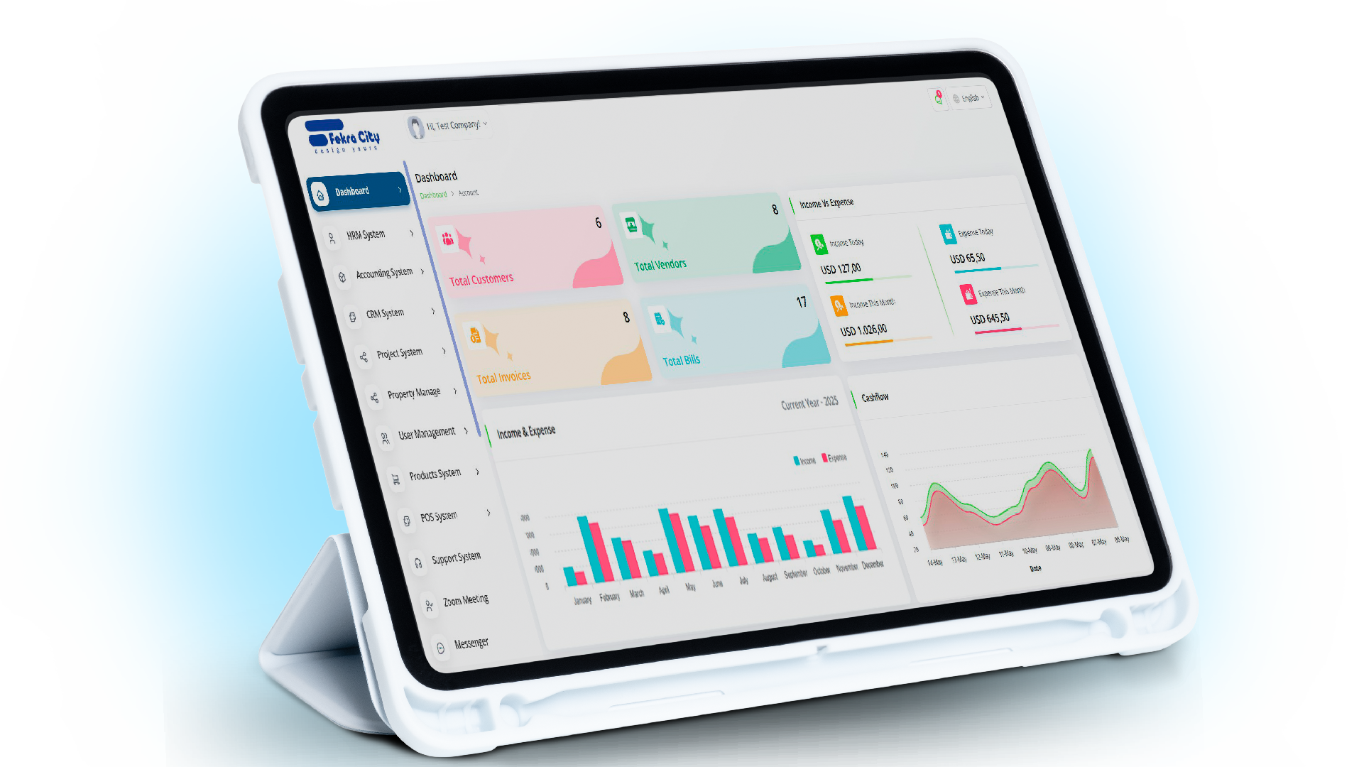 يجمع المبيعات والعمليات والمالية في منصة ذكية واحدة — مزج CRM وPOS والموارد البشرية والمحاسبة وسلسلة التوريد والتكاملات العالمية لتعزيز النمو السلس، والمدفوعات الذكية، والتحكم الكامل.